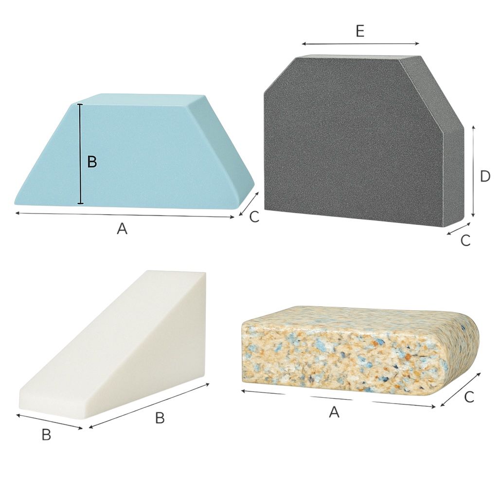 Foam conversion: Foam cut to custom 2D and 3D shapes, specs and sizes.